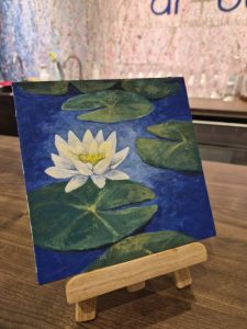 YOKOHAMA モネ 睡蓮の秋 30cm丸キャンバス Monet Waterlilies Autumn 30 cm round アートとワインの楽しい時間をご一緒しませんか? アートバー東京ではワインやソフトドリンクが飲み放題。おつまみもご用意しています。友人と一緒に、あるいは新しい友達を作りながら、楽しく絵を描きましょう。経験豊かな講師が、個別に丁寧にお教えしますので、誰でも素敵な作品を完成させることができます。 モネの睡蓮を描いてみましょう! モネは睡蓮だけで多数のパターンの作品を生み出しました。 あなたのテイストを盛り込んだオリジナルの睡蓮を楽しんでください。 酒類の提供がある為、20歳以上のお客様を対象とさせて頂きます。 画材、エプロン等 絵を描くのに必要なものは全て揃っていますので、そのままお越しください。未経験でも驚くほど上手な作品が完成します。 ワイン、ソフトドリンク、おつまみをご用意しておりますが、お好きな食べ物のお持ち込みやデリバリーのオーダーも可能です。 30cmの丸いキャンバスに描きます。 13:45開場 14:00時からセッション開始 大人 (Adults) 6600円(税込) Tax Included 【料金に含まれるもの】 ・絵画レッスン、画材 ・お飲み物:ワイン(白、赤)、水、お茶、ジュース etc. ・おつまみ ・絵のお持ち帰り Monet Waterlilies Autumn 30 cm round Canvas Take a