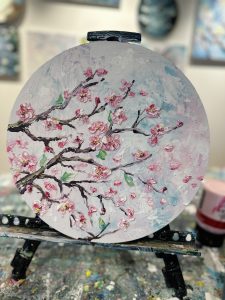 Use Modeling paste with palette knifes to build up this texture Sakura Art. Take your masterpiece home, ready to hang on the wall as a gorgeous statement piece that will surely impress family and friends. Let’s get creative!