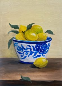 Lemons in a Blue Bowl – Still Life