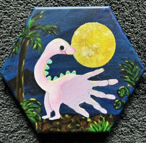 Place your handprint on a hexagon canvas and turn it into your favorite animal. We even have googly eyes to make him sillier!