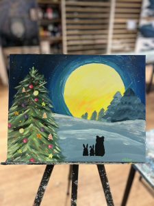 Kids paint this cute Chipmunk, foraging it the forest. Parents drop kids off with us and when you pick them up you will have your very own child’s masterpiece for the home.