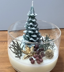 Let’s arrange a Christmas tree in a glass with some flowers! Make a Christmas tree with wax, and put some “snow” , then arrange in a glass. You can add flavor from over 10 kinds of candle fragrance if you like.