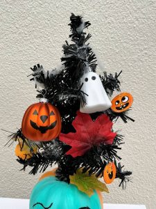 Halloween season is upon us and kids can create this fun “Halloween Tree” to decorate their rooms! They will design and paint their pumpkin and add the spooky decorations to their trees!