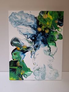 Create this spectacular large pour art as an impact piece for your home! This pour technique uses blowers to create patters in the paint. It’s a fun and different type of pour art! We will lead you thru the techniques to create a unique work using paint pouring. Your choices of colors are mixed, poured and maneuvered on the canvas to bring you art to life. Small blow torches are used to create cells in the paint.