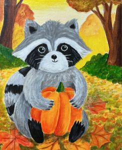 YOKOHAMA Kids Only -秋の森のアライグマ Raccoon in Autumn Forest あらいぐまとカボチャ 秋の訪れを感じながら、あらいぐまがカボチャを抱えるほっこりしたシーンを描いてみませんか? 温かみのある秋の風景を背景に、あらいぐまとカボチャを描く楽しさを体験できます。 穏やかな秋の魅力を絵に込めるアートクラス、ぜひご参加ください! こちらのセッションは6歳から12歳までのお子様が参加可能です。お子様を預けて2時間経てば、お帰りの際には自宅に飾る作品が完成しています。スナックとソフトドリンクはご用意していますが、食べ物のお持ち込みも可能です。 画材、エプロン等 絵を描くのに必要なものは全て揃っていますので、そのままお越しください。