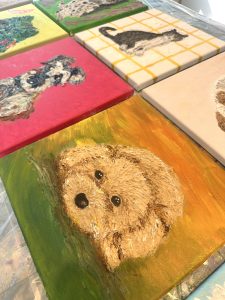 こちらのペットセッションは講師による下書き作成はありません。写真のA4サイズコピーをお持ちいただくことを推奨致します顔のアップの写真の方が、描きやすいです。アクリル絵の具とテクスチャーペーストを使って、ペットの絵を楽しく描きます。